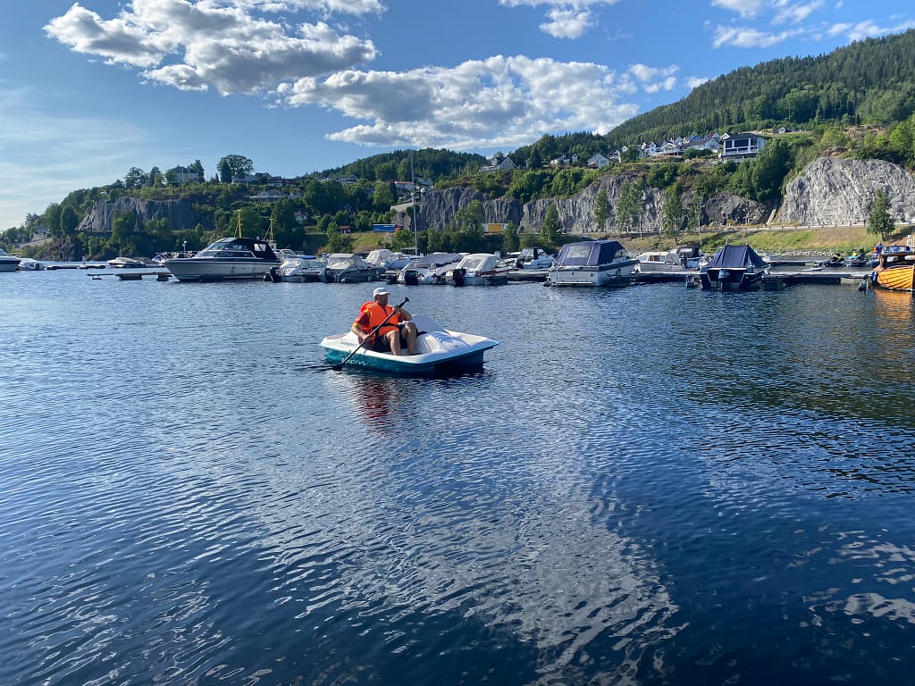 Over ser du bilde fra Erfani-familiens tur. Og nedenfor er bilde og video fra vår Halvor Evensen – som viser hvordan tråkkebåten også kan håndteres av én person.