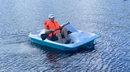 Hver fredag, fra fredag 30. juni, kl. 13-19 kan du også prøve våre nye tråkkebåt helt gratis. Tråkkebåten egner seg fint både for par og for voksne med et par barn (opptil 4 totalt). Og du tråkker trygt rundt i indre havn eller langs strandlinjen (se video):