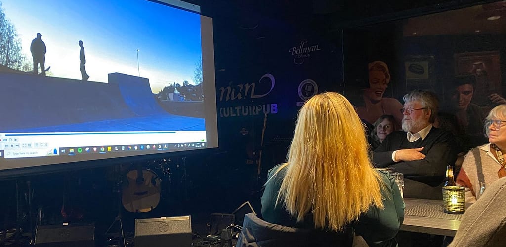 Fra framvisningen av Norheims kortfilm, som viser den nybygde Skateparken/rulleparken ved Nesøya.