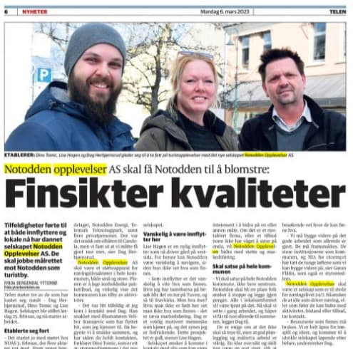 Interessert i å bli med og eie Notodden Opplevelser AS? Send epost til kontakt@notoddenopplevelser.no Eller: Innbetal beløp til kontonr. 2699 46 55190 (Hjartdalbanken) – merk betalingen «Aksjekapital».